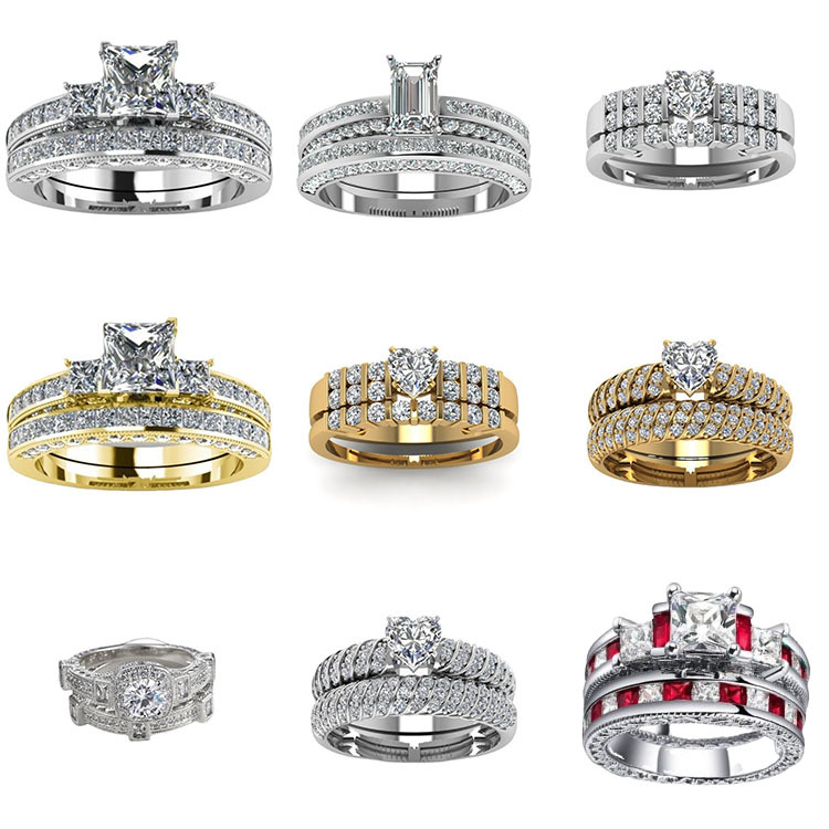 晨睿新款 现货欧美微镶高碳钻套装组合戒指 跨境爆款配饰戒指