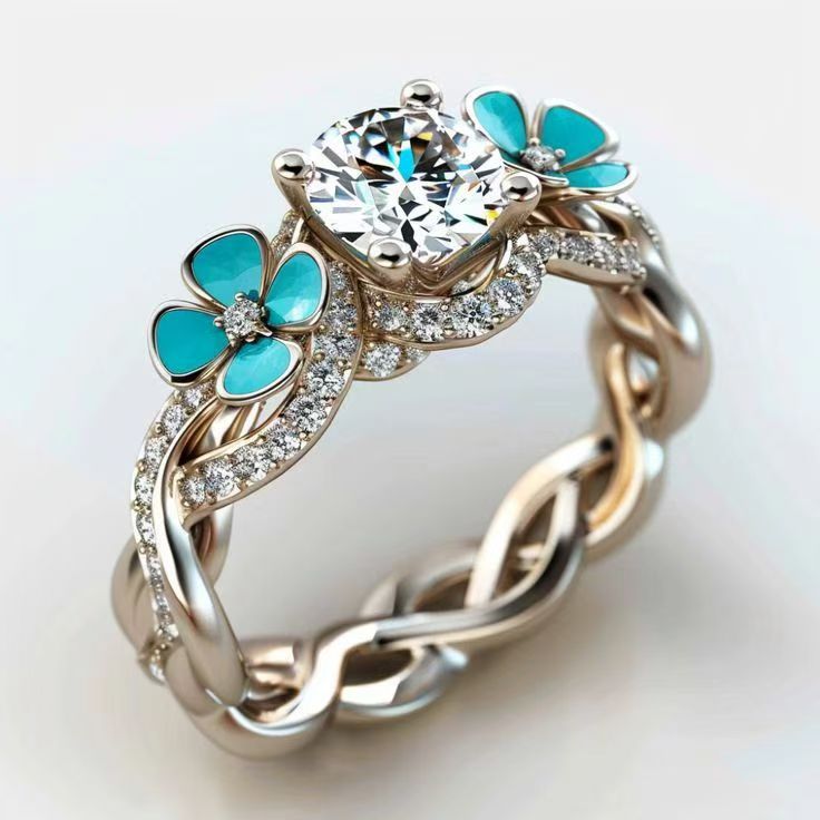 クロスボーダー女性指輪復古風緑松石メッキ三色男女指輪欧米結婚宝石民族風卸売り
