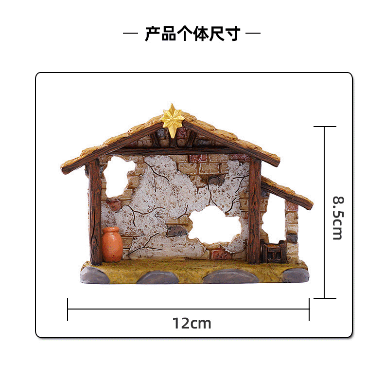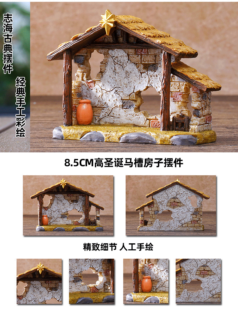 盈图工艺8.5CM高古典圣诞马槽组房子摆件装饰礼品礼物树脂工艺品