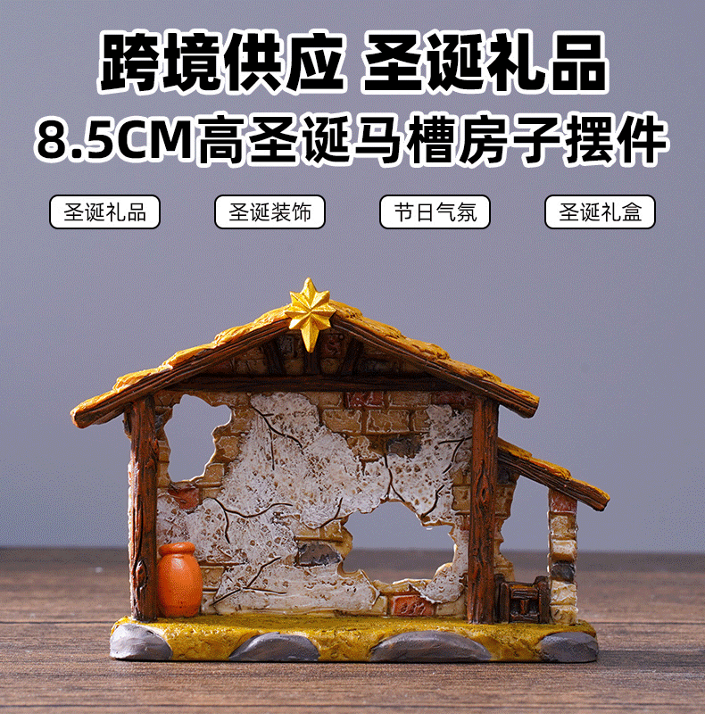 クロスボーダー供給8.5CM高さのクラシックなクリスマス飼葉桶セットシーンオーナメントギフトボックスホリデーギフト樹脂工芸品