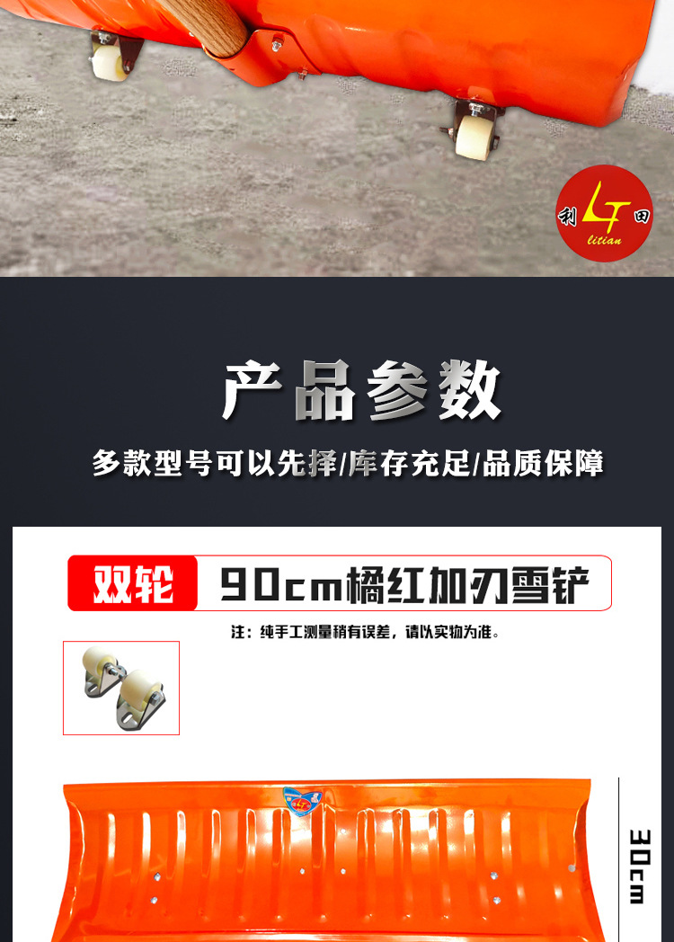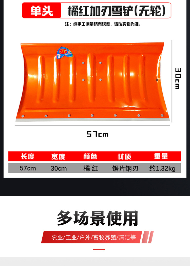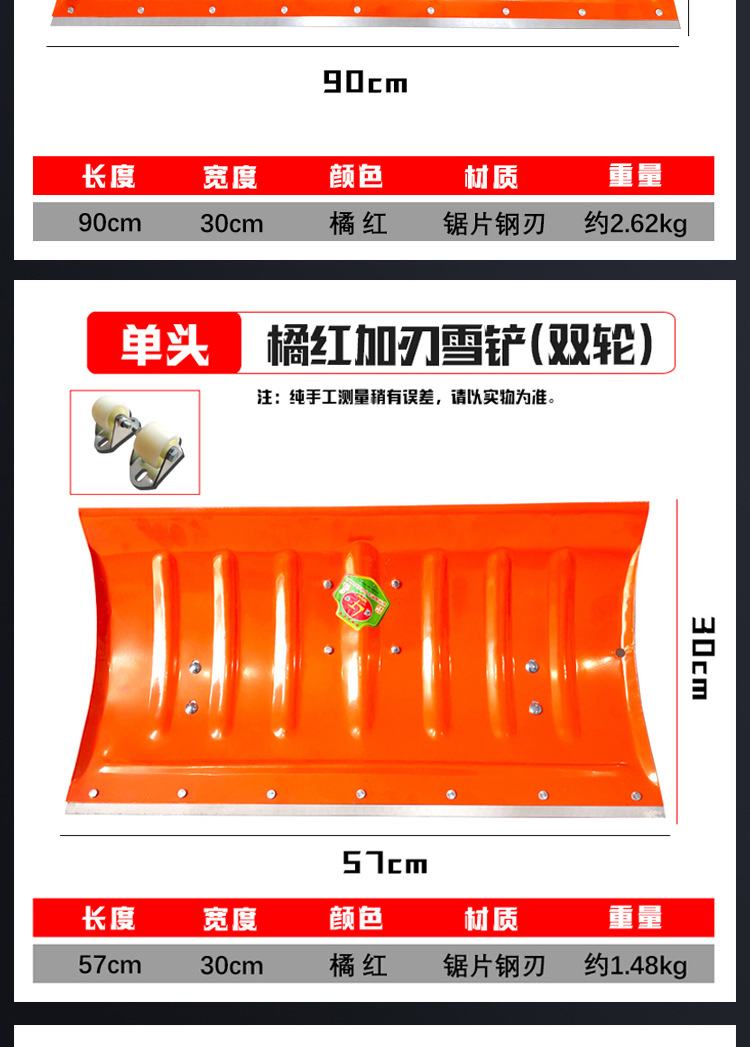 规格 橘红加刃雪铲(无轮)单头,橘红加刃雪铲(双轮)单头,90厘米橘红加刃雪铲(双轮)单头,橘红喷塑雪铲单头,橘红加刃雪铲(无轮)+1.2米木柄,橘红加刃雪铲(无轮)+1.4米木柄,橘红加刃雪铲(无轮)+1.15米D型长握柄,橘红加刃雪铲(双轮)+1.2米木柄,橘红加刃雪铲(双轮)+1.4米木柄,橘红加刃雪铲(双轮)+1.15米D型长握柄,90厘米橘红加刃雪铲(双轮)+1.2米木柄,90厘米橘红加刃雪铲(双轮)+1.4米木柄,90厘米橘红加刃雪铲(双轮)+D型长握柄,橘红喷塑雪铲+1.2米木柄,橘红喷塑雪铲+1.4米木柄,橘红喷塑雪铲+1.15米D型长握柄