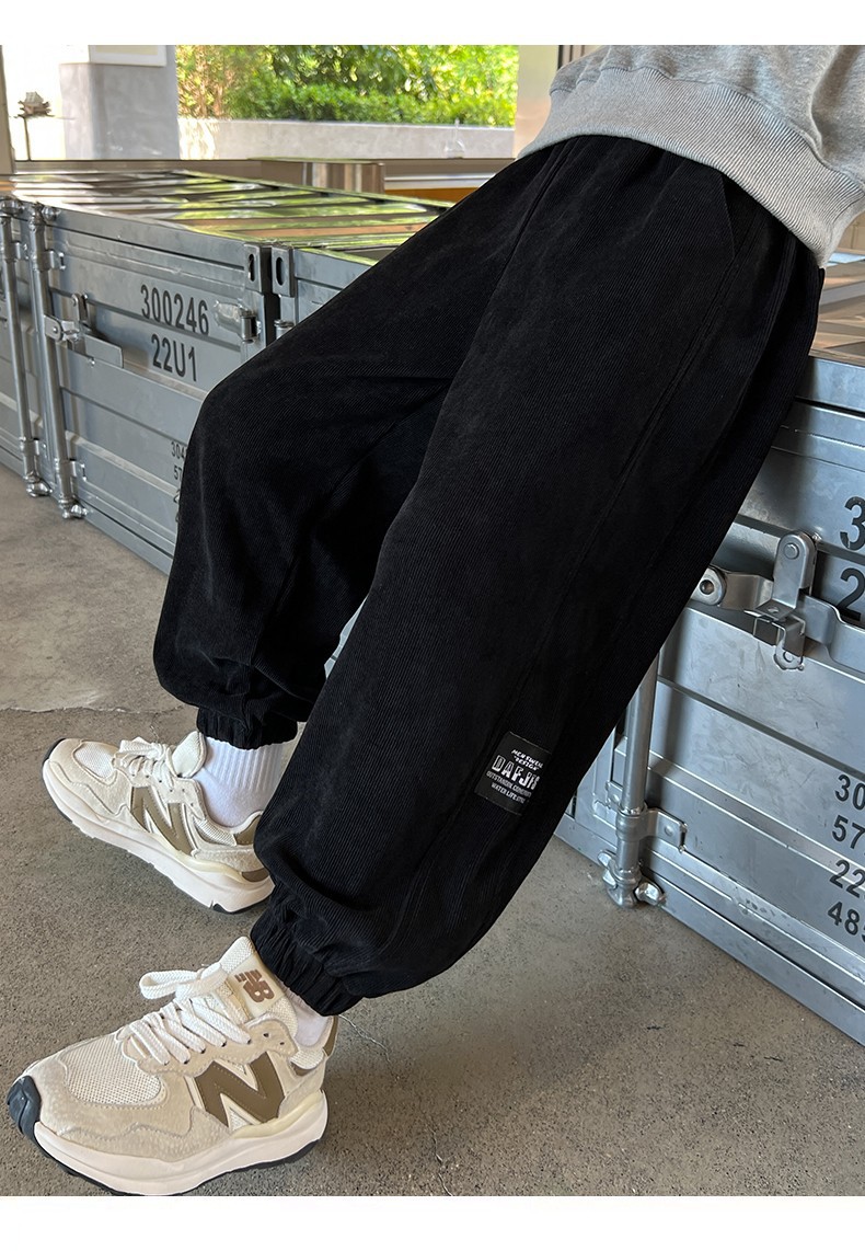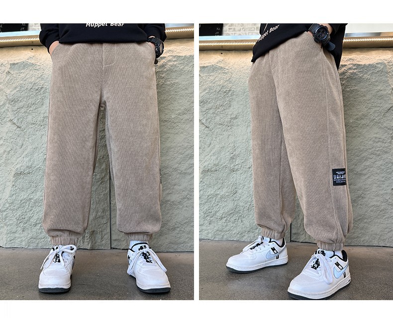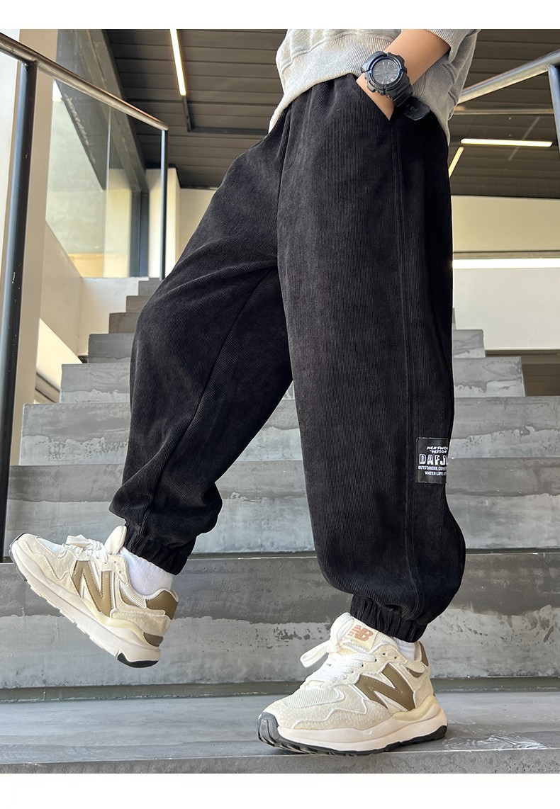 男童加绒裤子2025新款秋冬款加厚灯芯绒运动中大童冬季男孩卫裤潮