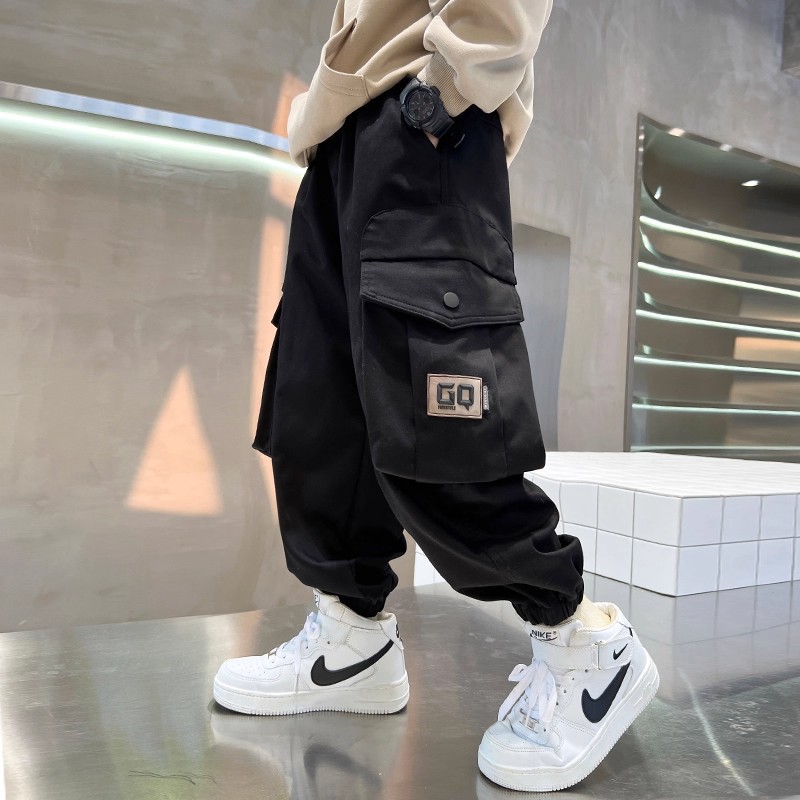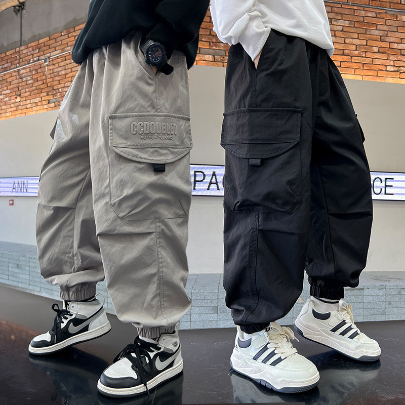 子供服男の子パンツ2025春秋新作中大型子供ズボン春服クールでハンサムな作業着春男の子トレンド