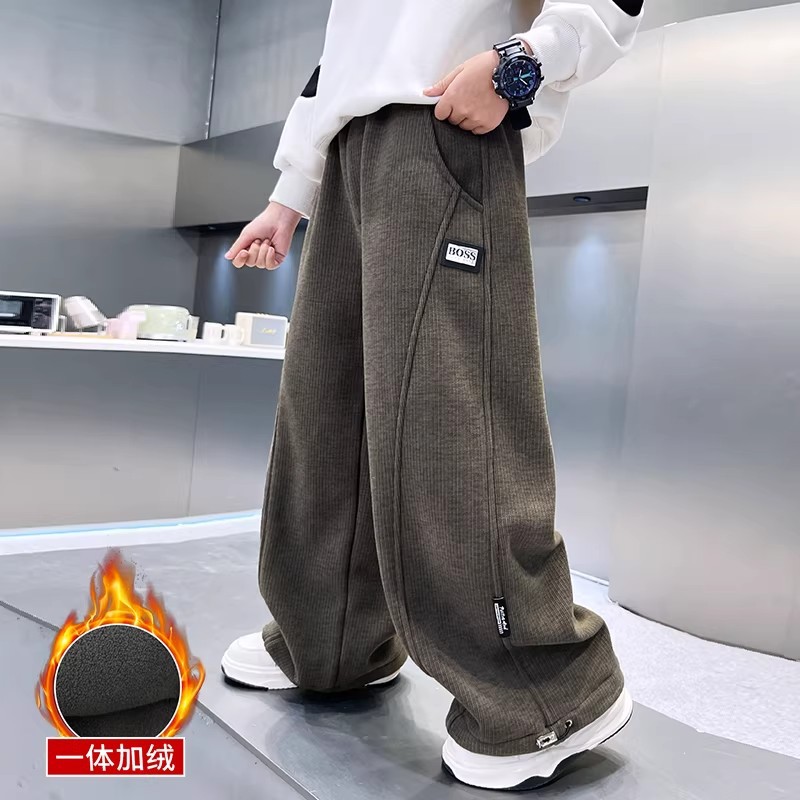 男童加绒裤子秋冬款2025新款儿童灯芯绒休闲裤冬季中大童男孩长裤