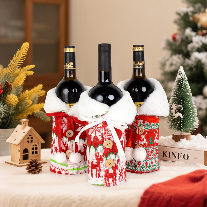 豪貝新作創意クリスマス装飾品ニットボタン雪花酒瓶カバー赤いセーターワインカバーワインバッグ