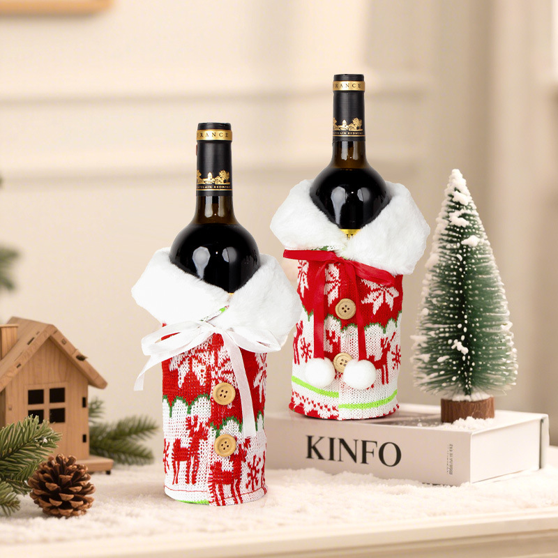 新しい北欧ニットヘラジカスノーフレーク赤ワインボトルカバークリスマス装飾毛玉ワインボトルカバー家庭用品