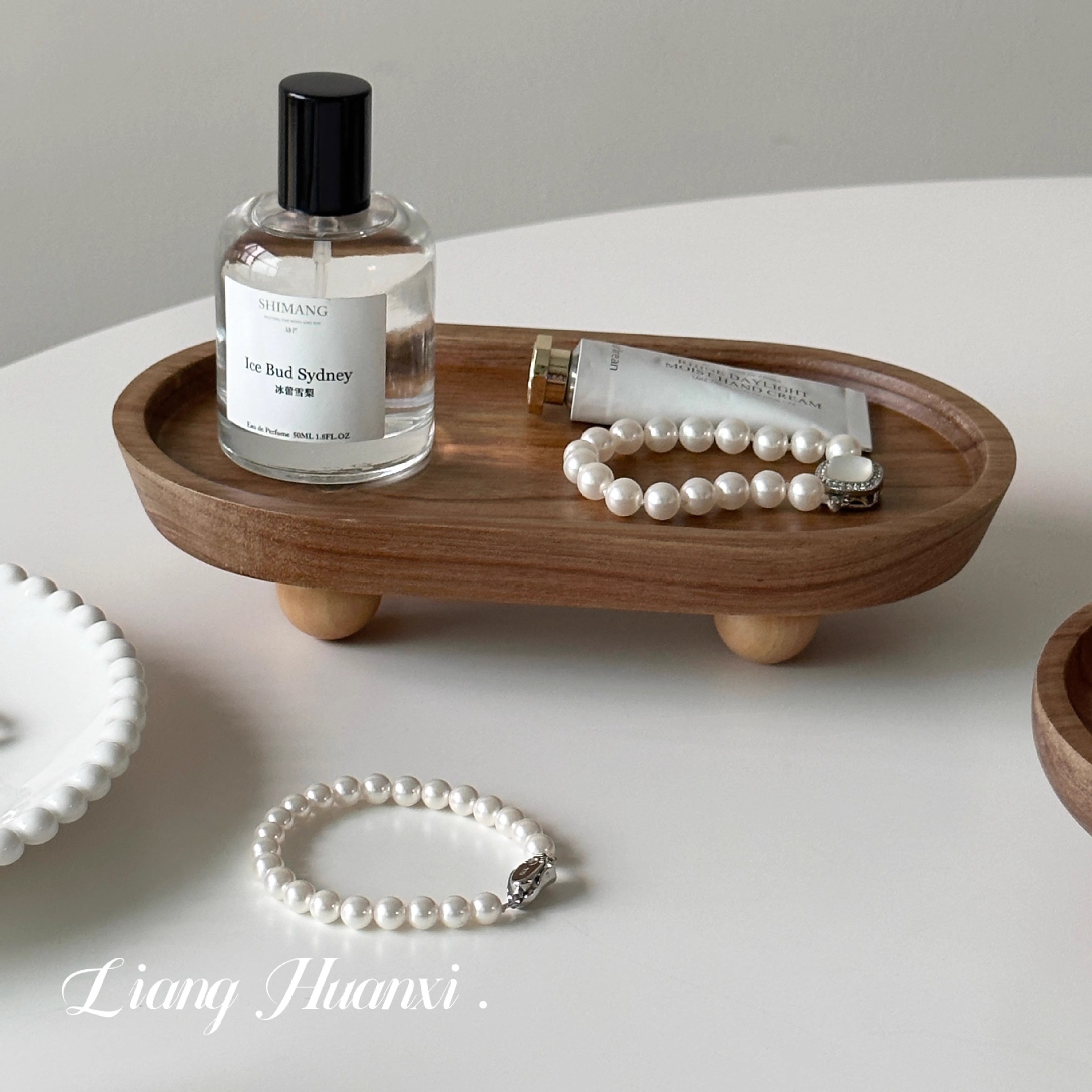 复古实木首饰盘香水置物架香薰托盘玄关钥匙收纳盘家居摆件置物架