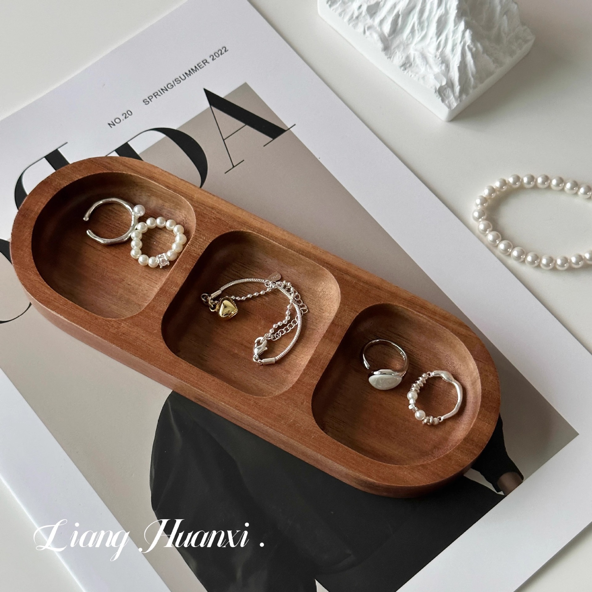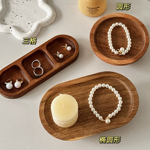 颜色 椭圆实木托盘,每一件颜色都不一样,圆形实木托盘,每一件颜色都不一样,三格实木首饰盘,每一件颜色都不一样