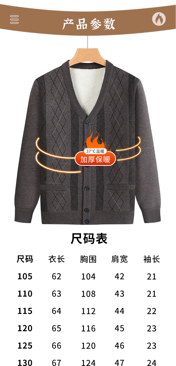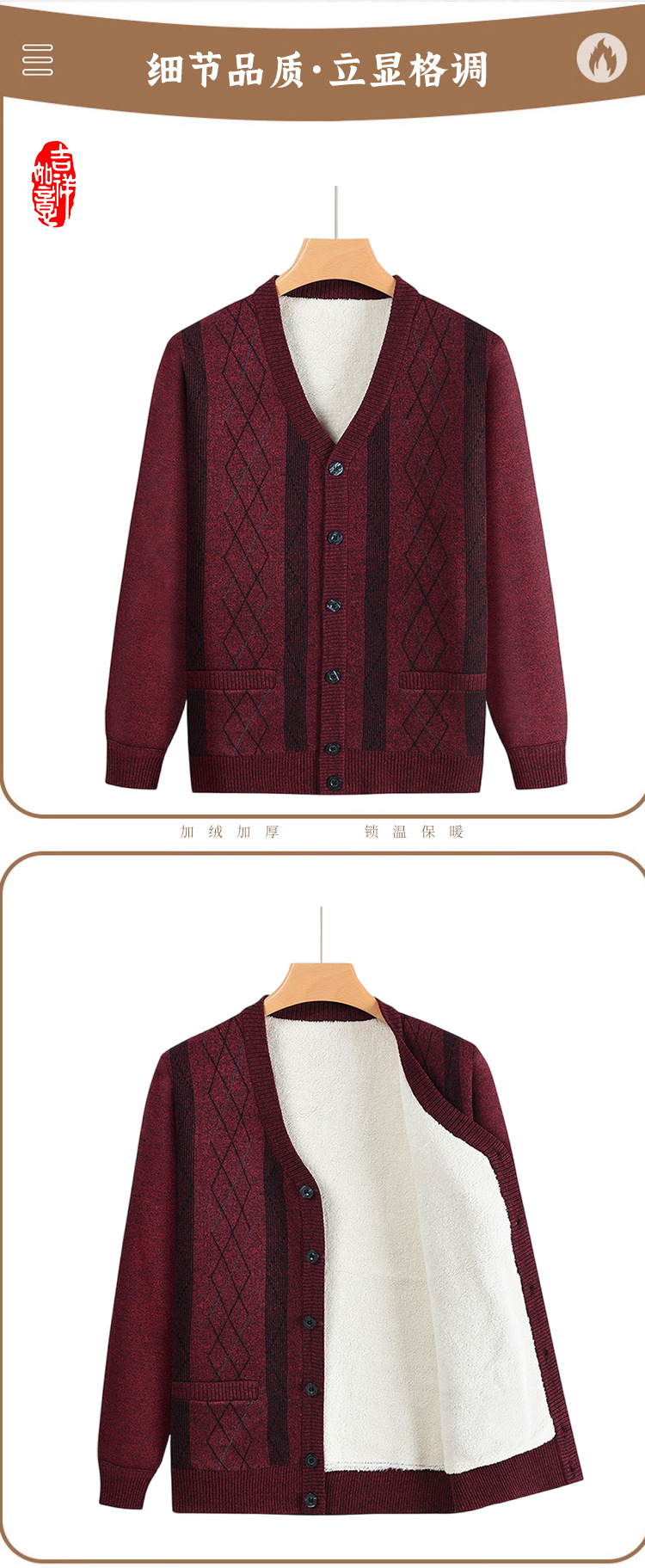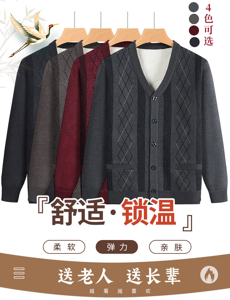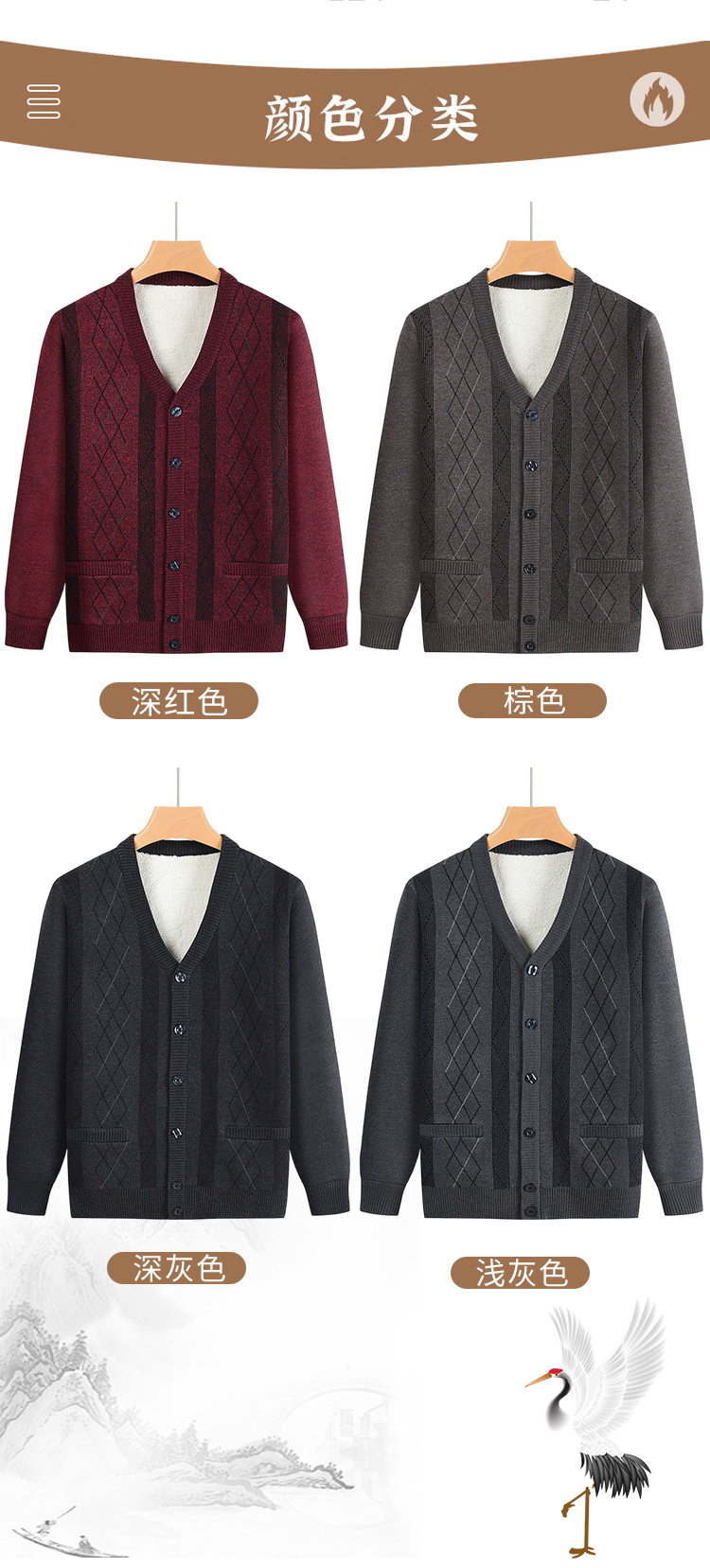 中高年男性カーディガンセーター秋装ニット父秋冬装祖父加毛保温コート