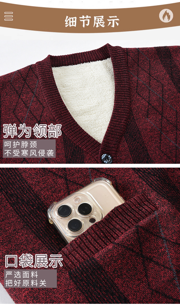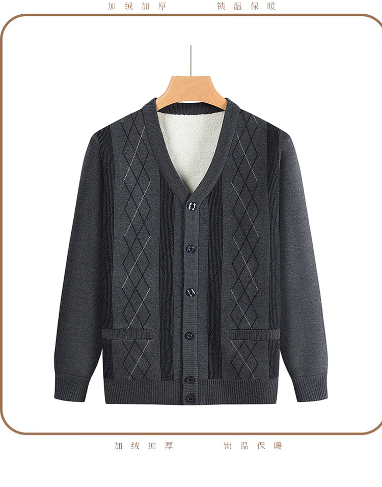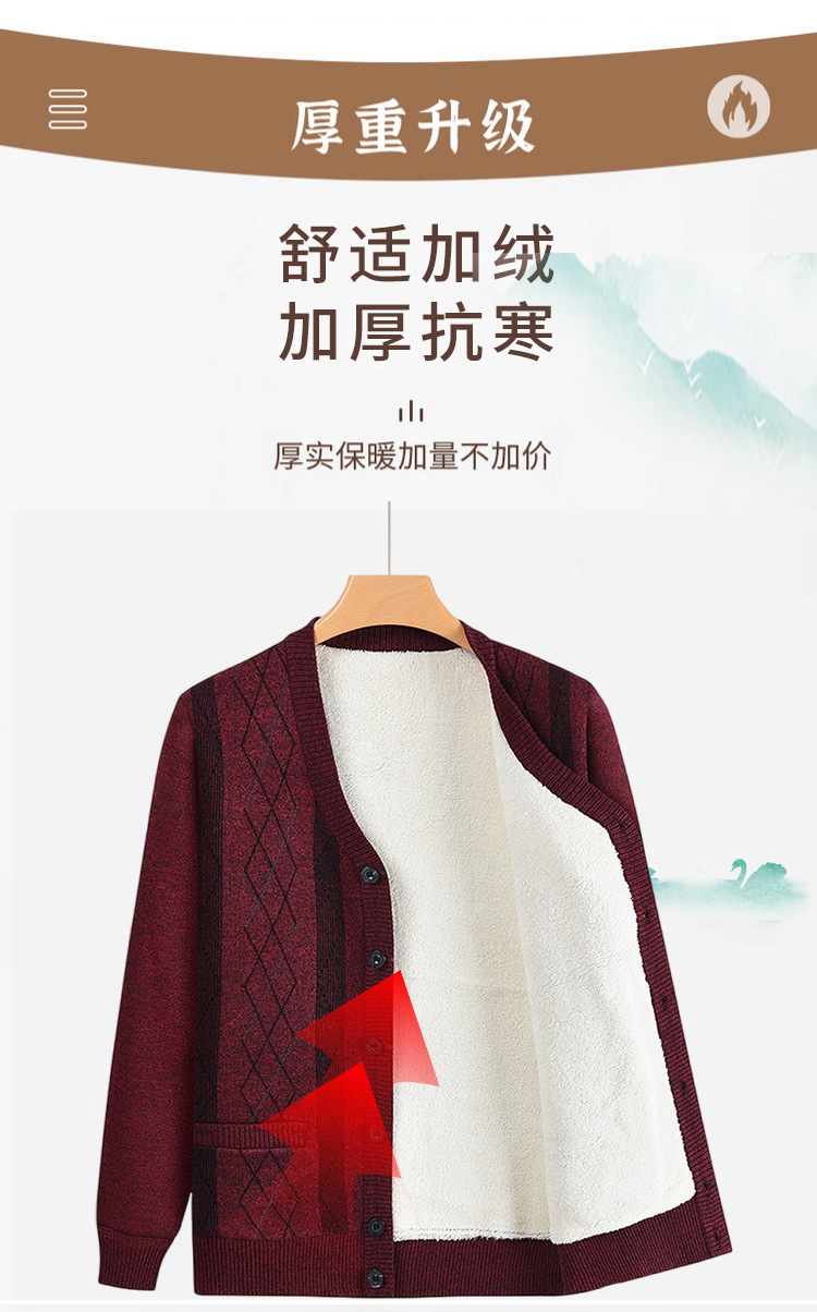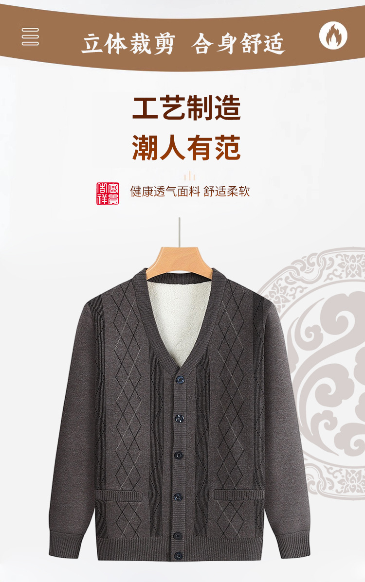 中高年男性カーディガンセーター秋装ニット父秋冬装祖父加毛保温コート