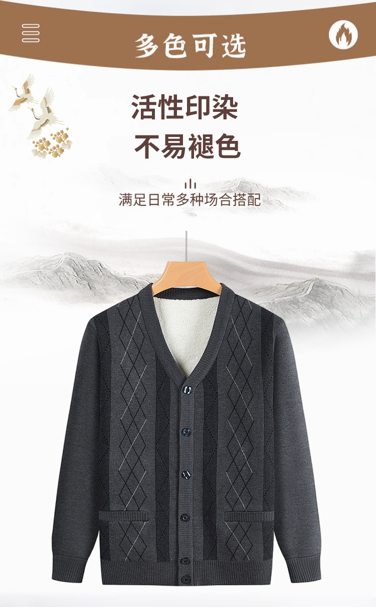 源头工厂爸爸开衫毛衣加绒加厚中老年人男针织外套爷爷秋冬装上衣