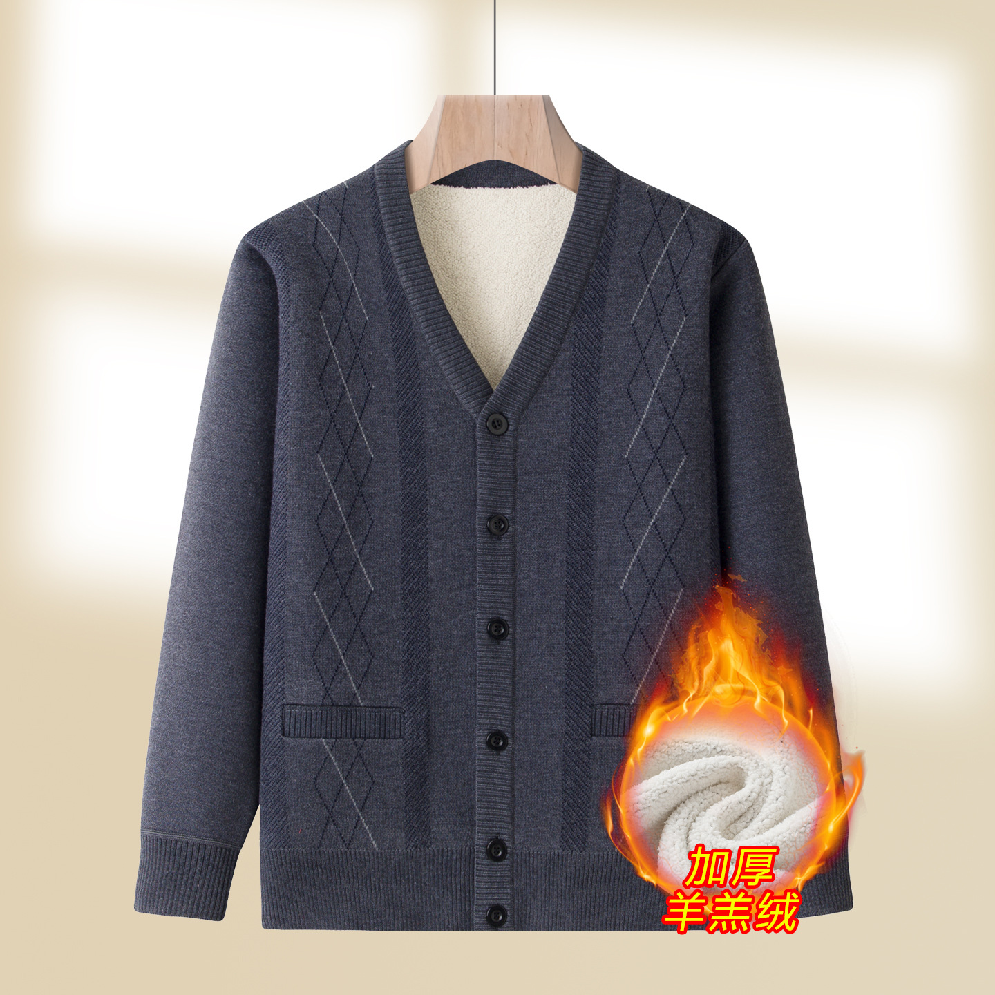 中老年人男开衫毛衣爸爸秋冬装针织衫爷爷羊羔绒加绒加厚保暖外套