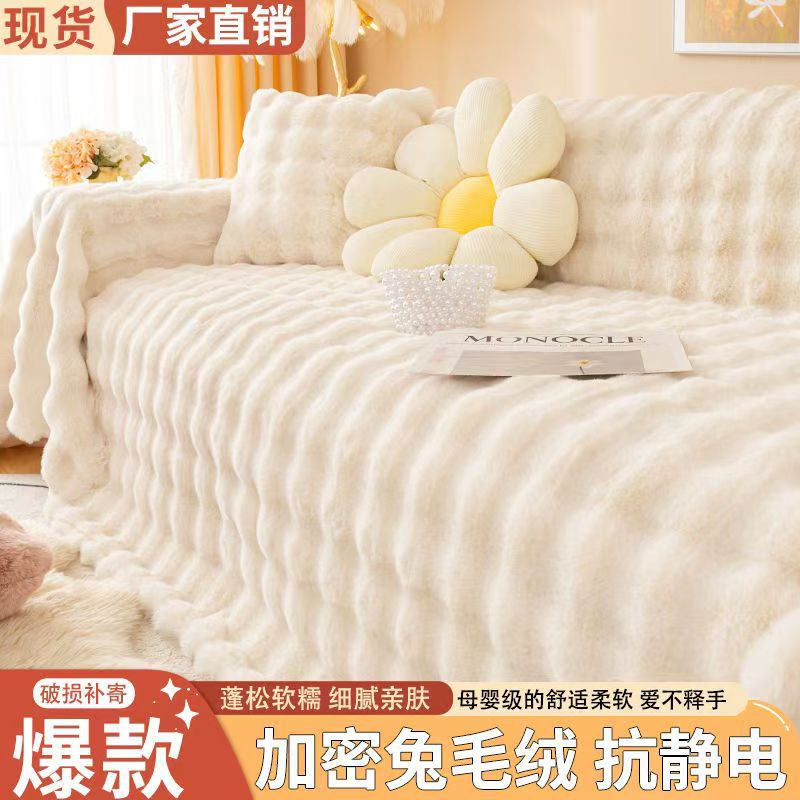 网红兔毛绒沙发盖布巾四季通用加厚皮沙发垫子全包套罩全盖毯
