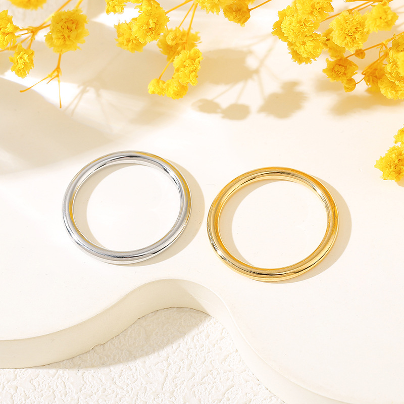 日韓丸線素輪光面人差指尾戒18kフロスト金チタン鋼指輪女性個性insネット赤素輪