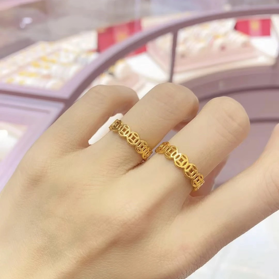 幸運を呼び込むチタン鋼銭リング、富を引き寄せる銭多々リング、女性用古代銭風オープンリング、個性的なデザイン