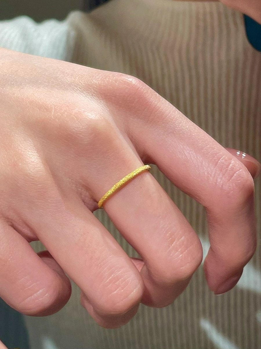 迷你满圈细闪戒指~闪烁通勤精致叠戴素圈简约显白贵气指环仿黄金