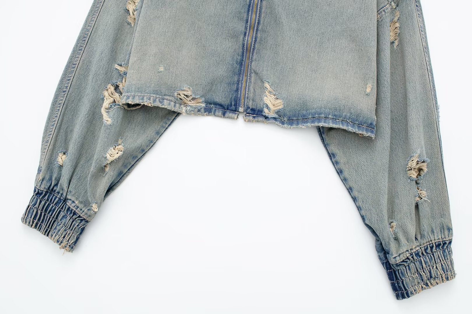 外贸批发 欧美风女装 破洞装饰牛仔短款夹克外套 4365271