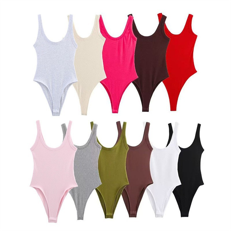 外国貿易卸売り夏の新型欧米風リブニット純色修身ストラップ服4424801