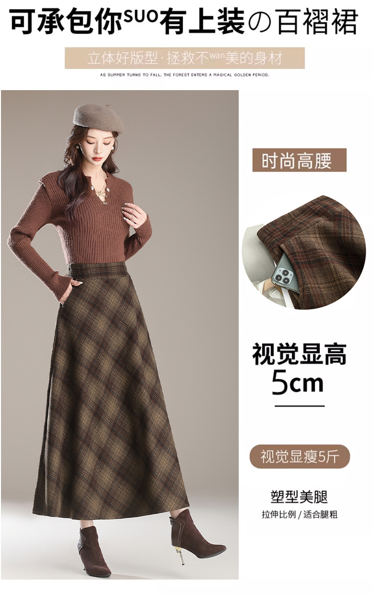 2025秋冬季女装新款百搭格子毛呢半身裙女高腰A字长裙大摆裙伞裙