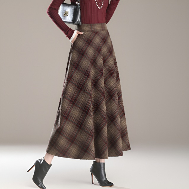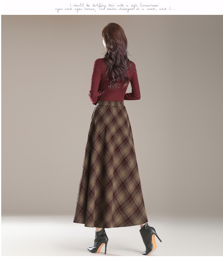 2025秋冬新款文艺复古毛呢格子半身裙高腰长款显瘦大摆裙A字裙女