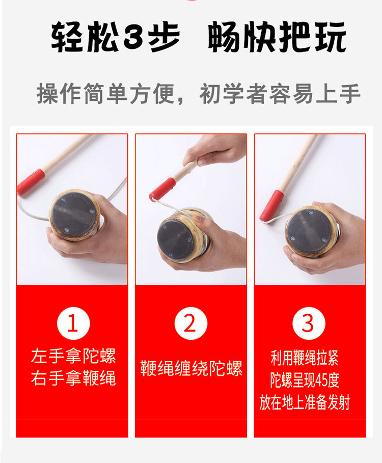 实木陀螺儿童发光抽打老式木头陀螺健身成人冰嘎尜儿带鞭杆鞭绳子