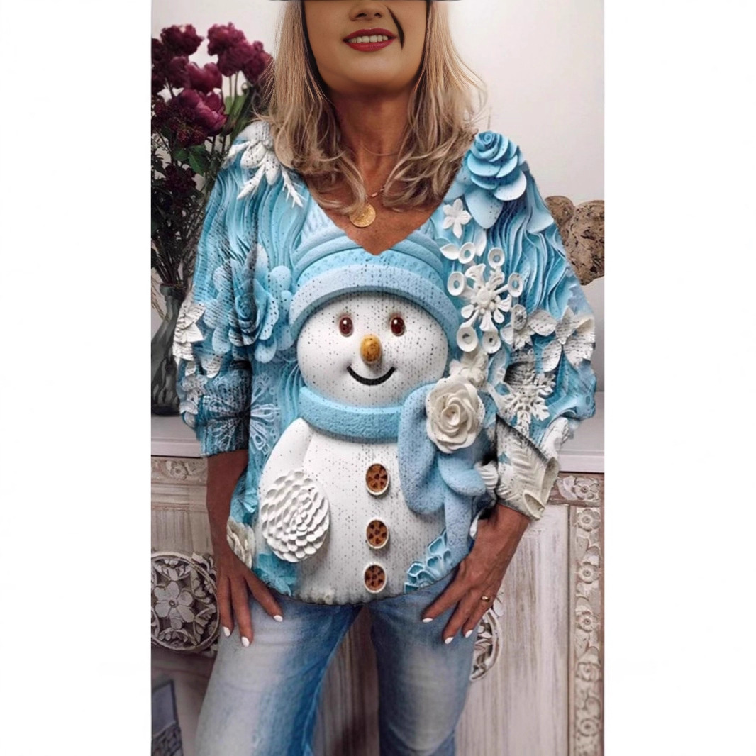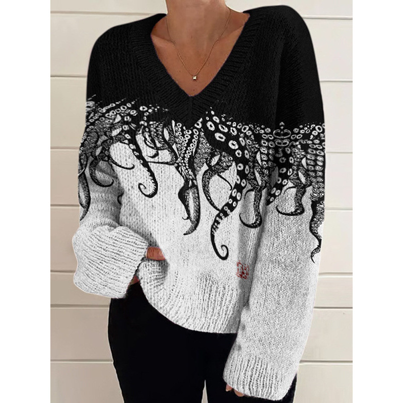 亚马逊跨境外贸新款粗针热卖3D数码印花女士V领秋冬季卫衣上衣
