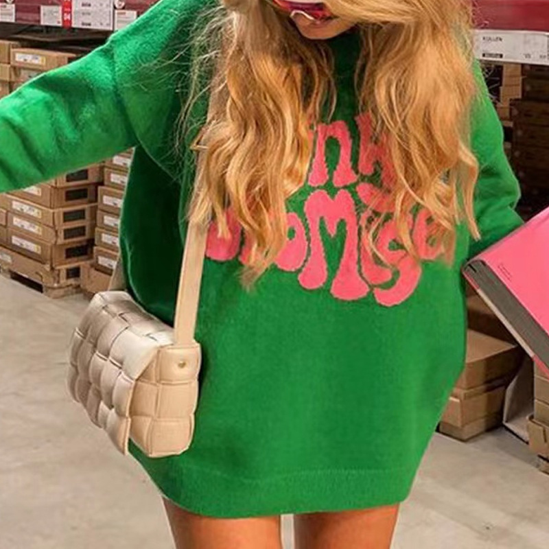 セーターの女性2022欧米ins秋冬の新しいゆるい丸首のアルファベットのジャカードの上着の対外貿易