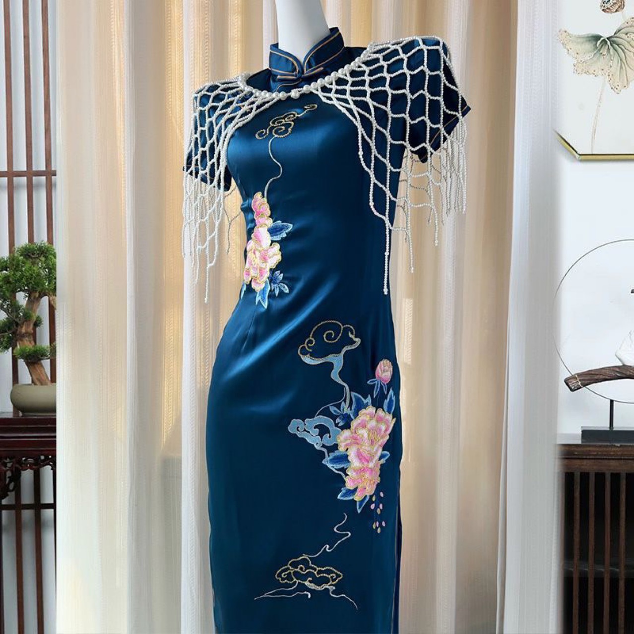 チャイナドレスクラウドショルダーレトロパール新中国風手作りタッセル中国風チャイナドレス特別なアウターショール女性の若いスタイル