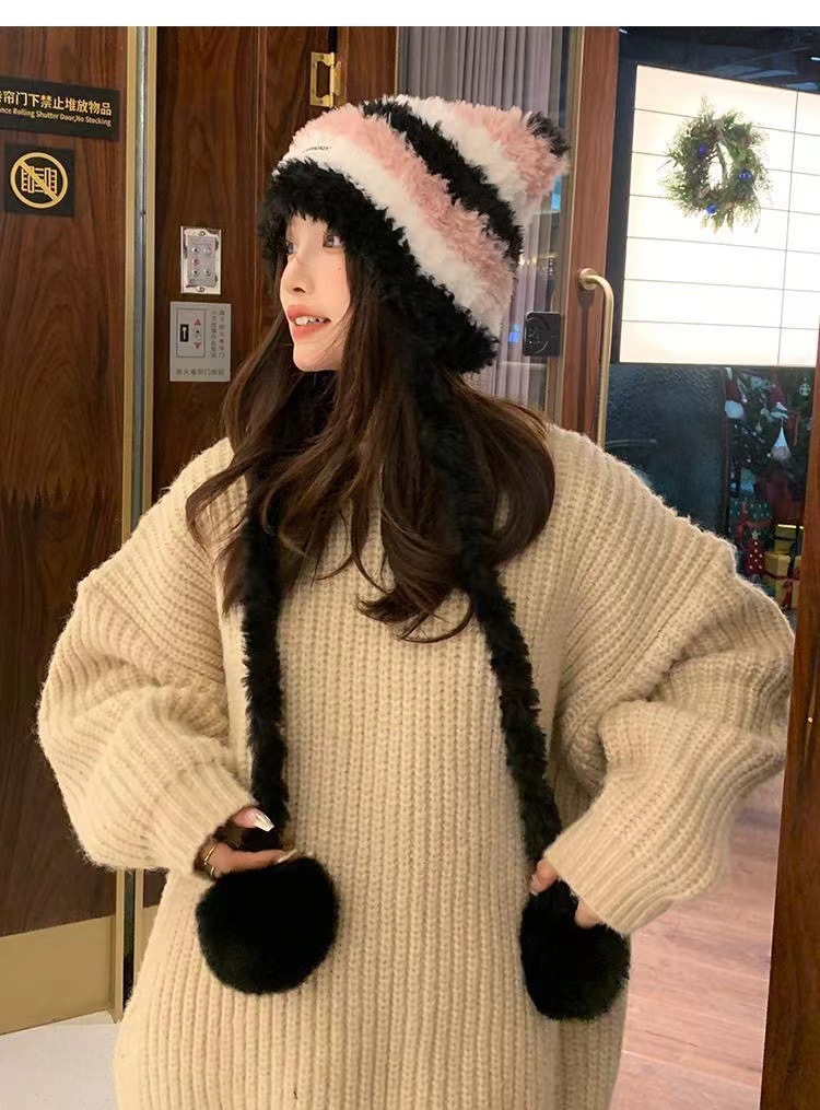 可爱小糖豆毛绒渔夫帽子女秋冬季保暖防寒针织毛线帽防风护耳帽子
