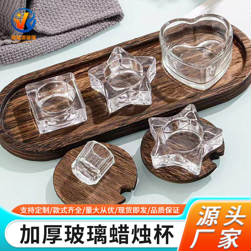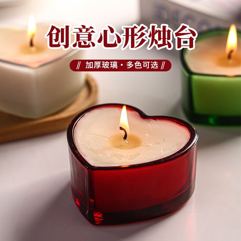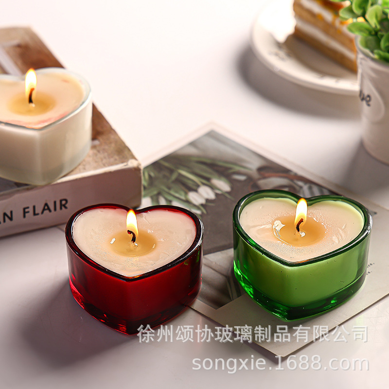 创意爱心形蜡烛杯彩色透明玻璃香薰杯酒店民宿浪漫餐桌烛台杯摆件