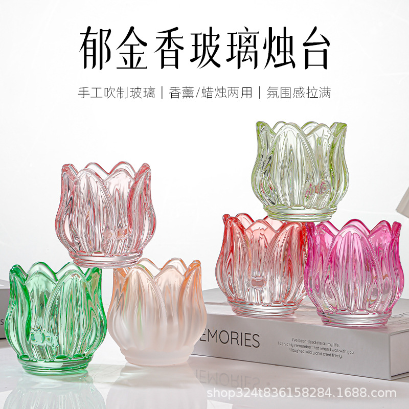 亚马逊多色彩色郁金香蜡烛杯花朵形状蜡烛杯香薰蜡烛杯家用蜡烛杯