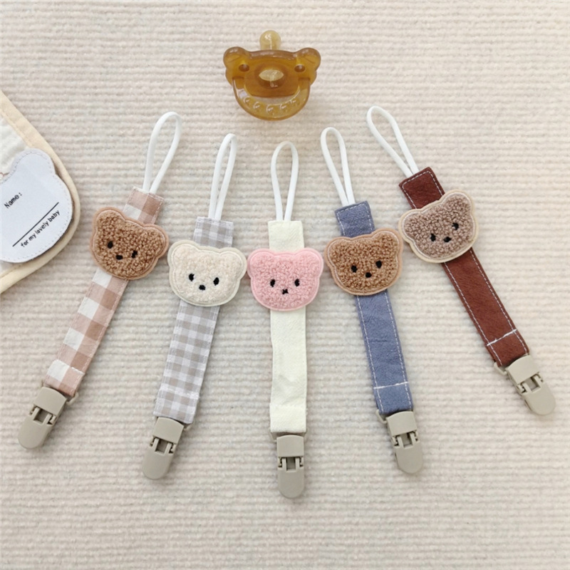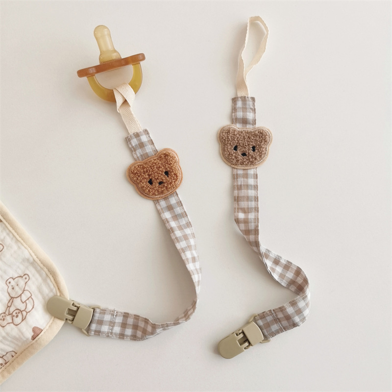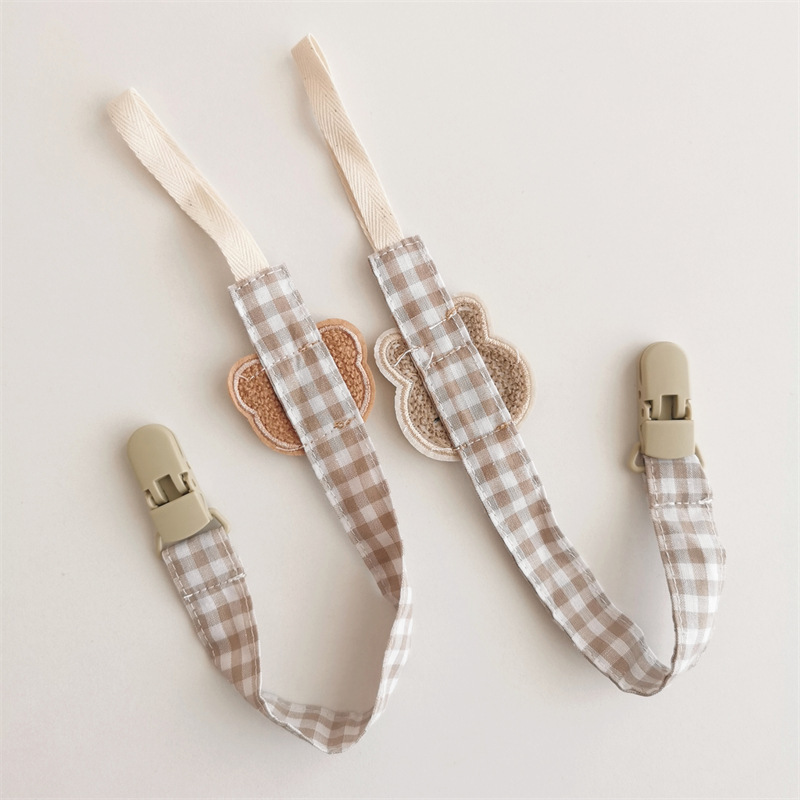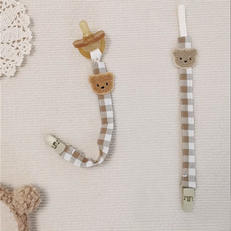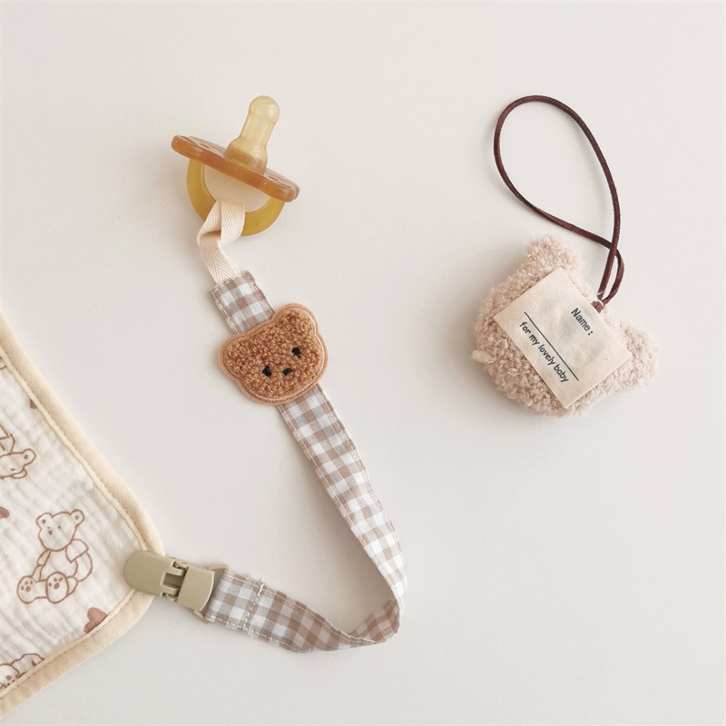 Ins風新型漫画熊乳幼児布芸格子乳首のチェーンが落ちないようにします。
