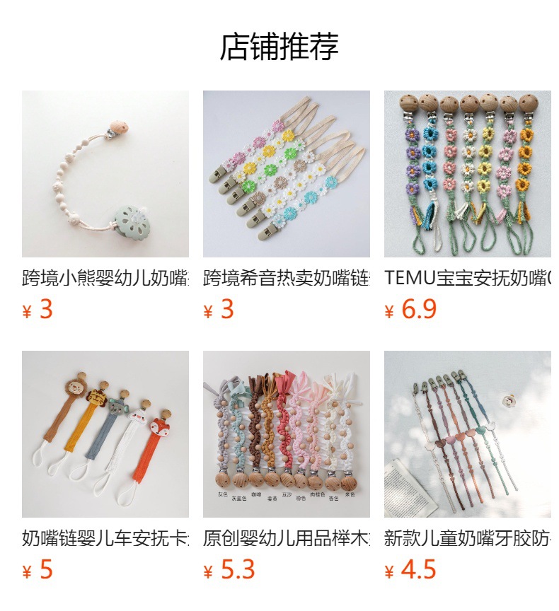 クロスボーダーinsベビー一体シリコンチェーン穴なしケヤキ挟みおしゃぶり防止チェーンなだめるおしゃぶりチェーン