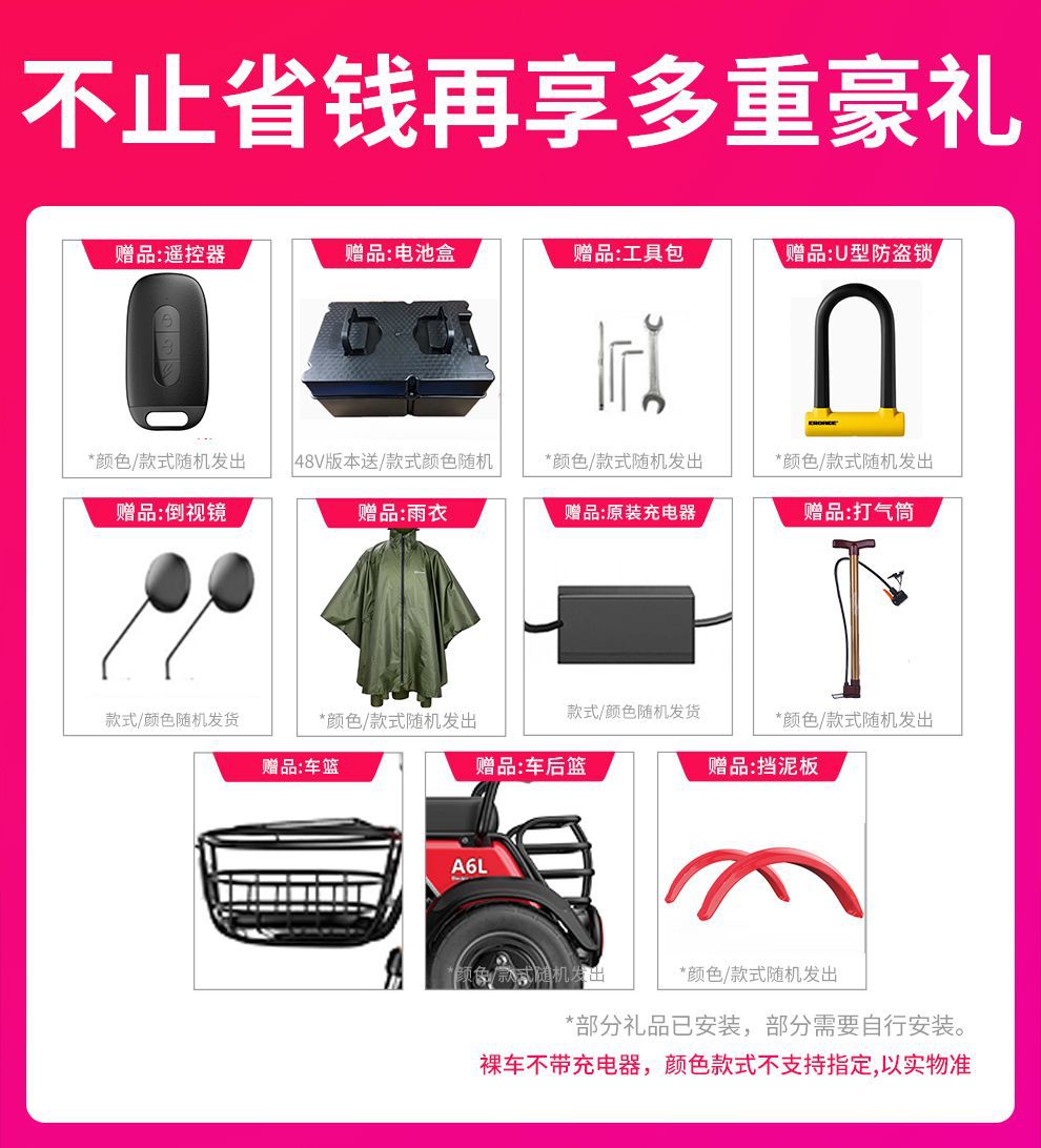 规格 48V600W裸车(不含礼品充电器电池)备注颜色,60V800W裸车(不含礼品充电器电池))备注颜色,72V1000W(不含礼品充电器电池))备注颜色,48V12A超威铅酸(带正品码))备注颜色,48V20A超威铅酸(带正品码))备注颜色,48V23A超威石墨烯(带正品码))备注颜色,60V23A超威石墨烯(带正品码))备注颜色,72V20A超威铅酸(带正品码))备注颜色,72V23A超威石墨烯(带正品码))备注颜色,72V26A定制汽车锂电,72V35A定制汽车锂电