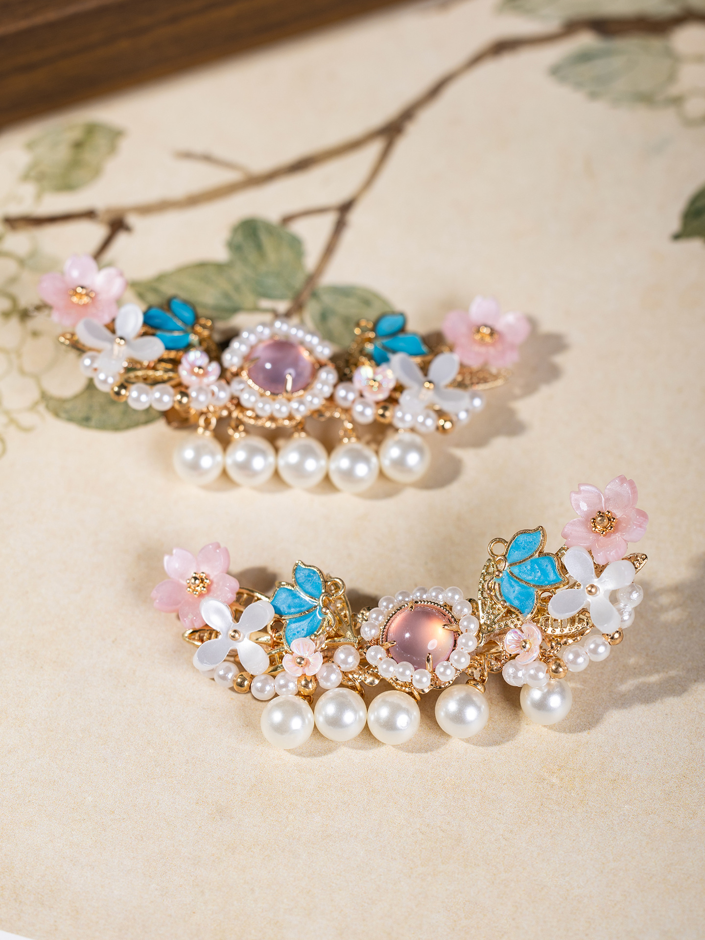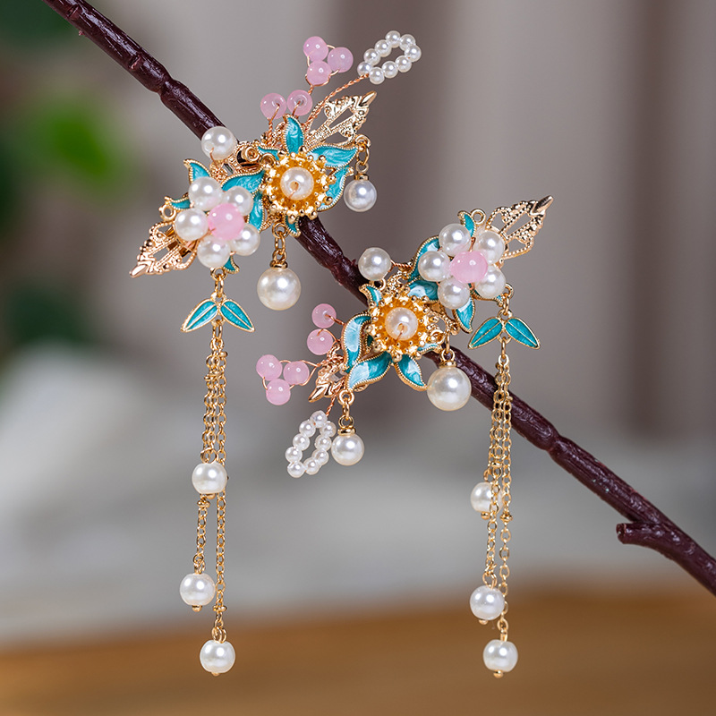 集珠蝶ヘアピン古風新中国風髪飾り国風漢服古着手作りサイドクリップ復古少女頭飾り
