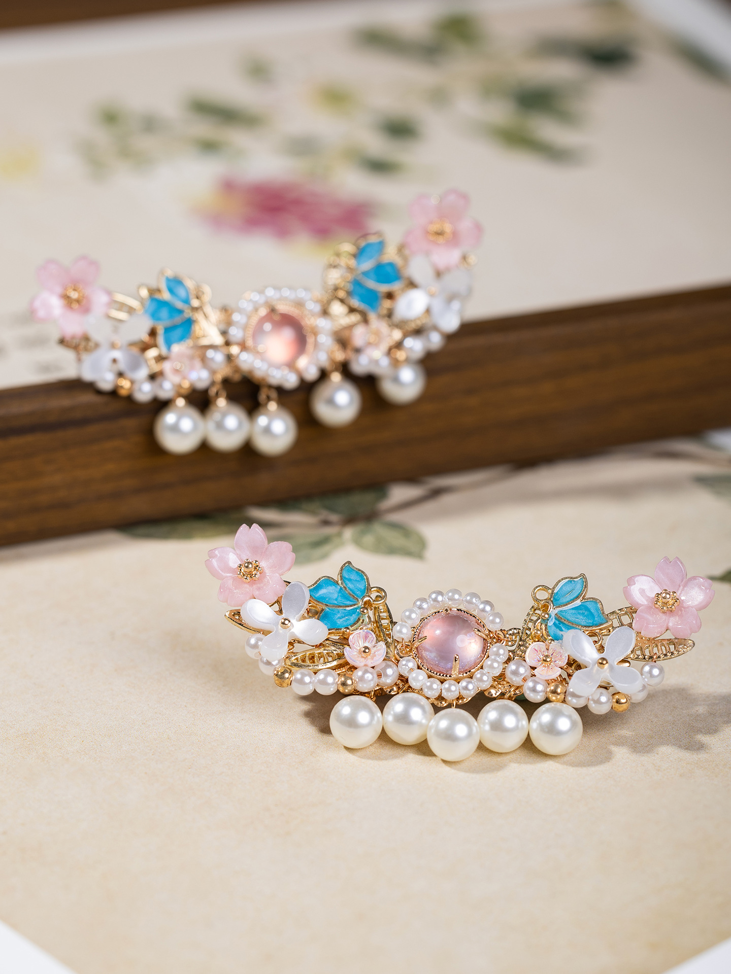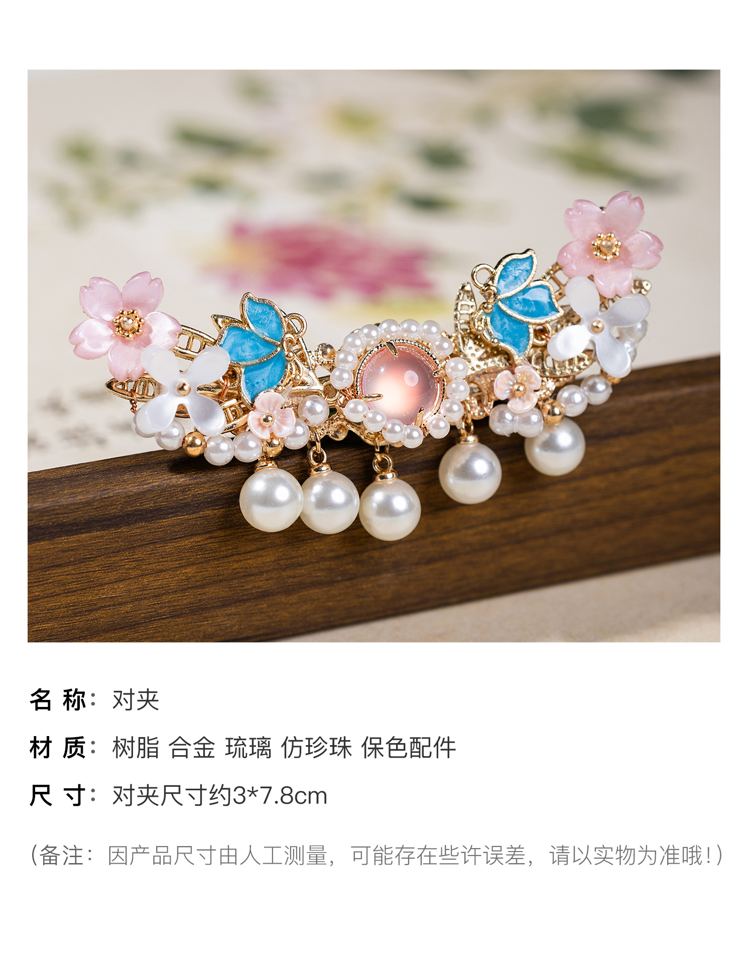 新中式汉服头饰古典国风边夹烧蓝夹子古风发饰儿童发夹古装配饰