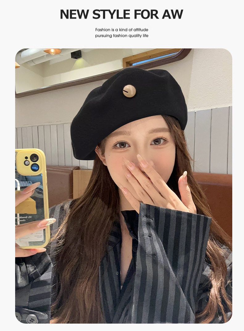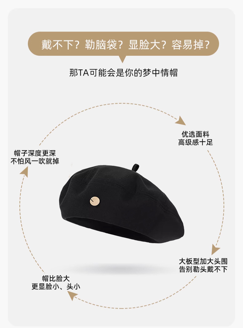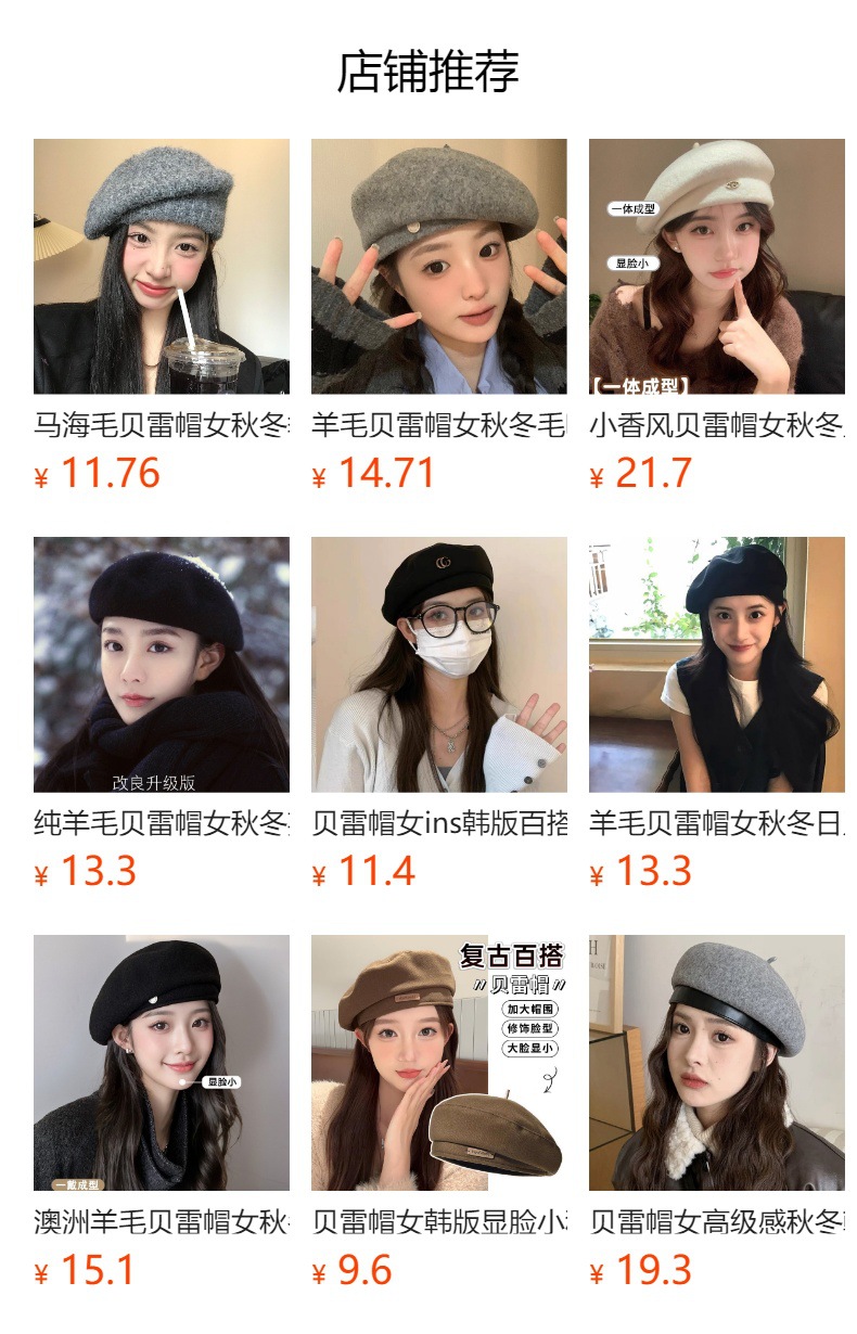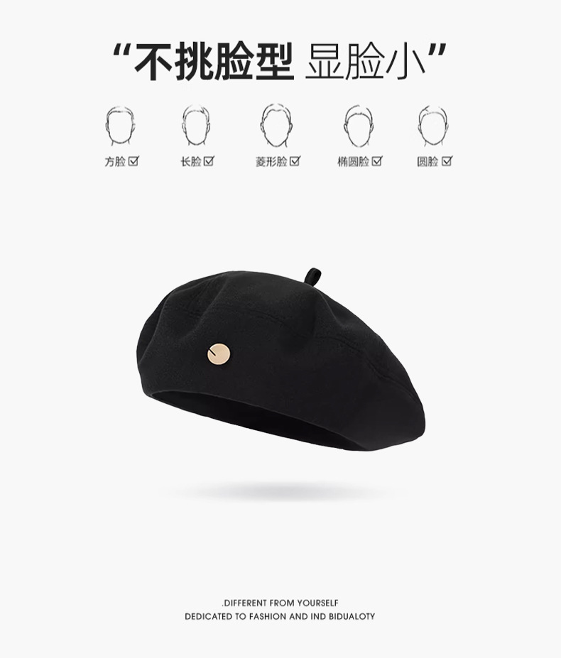大きい頭はウールを囲んでいます。ベレー帽の女性と春秋の新型は顔が小さくて、逆に前進帽をかぶっています。