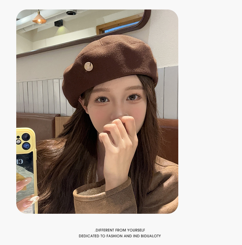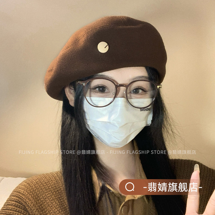 贝雷帽女高级感显脸小新款秋冬帽子韩系百搭画家帽冬季毛呢蓓蕾帽