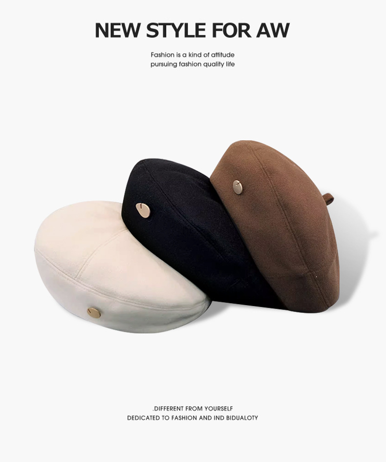 アメリカのレトロなベレーの帽子は秋冬に八つの帽子の女性を合わせます。