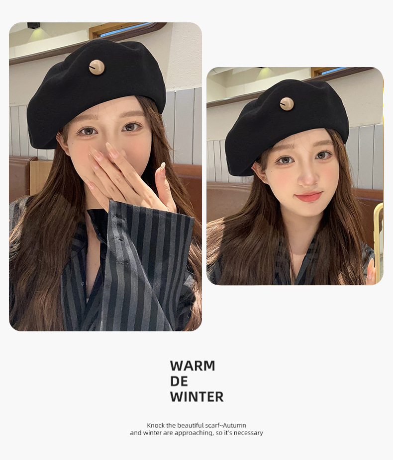 ウールベレー帽 レディース 2025秋冬新作 大きな頭囲でも小顔効果あり ペインターハット 冬 韓国風 万能帽子