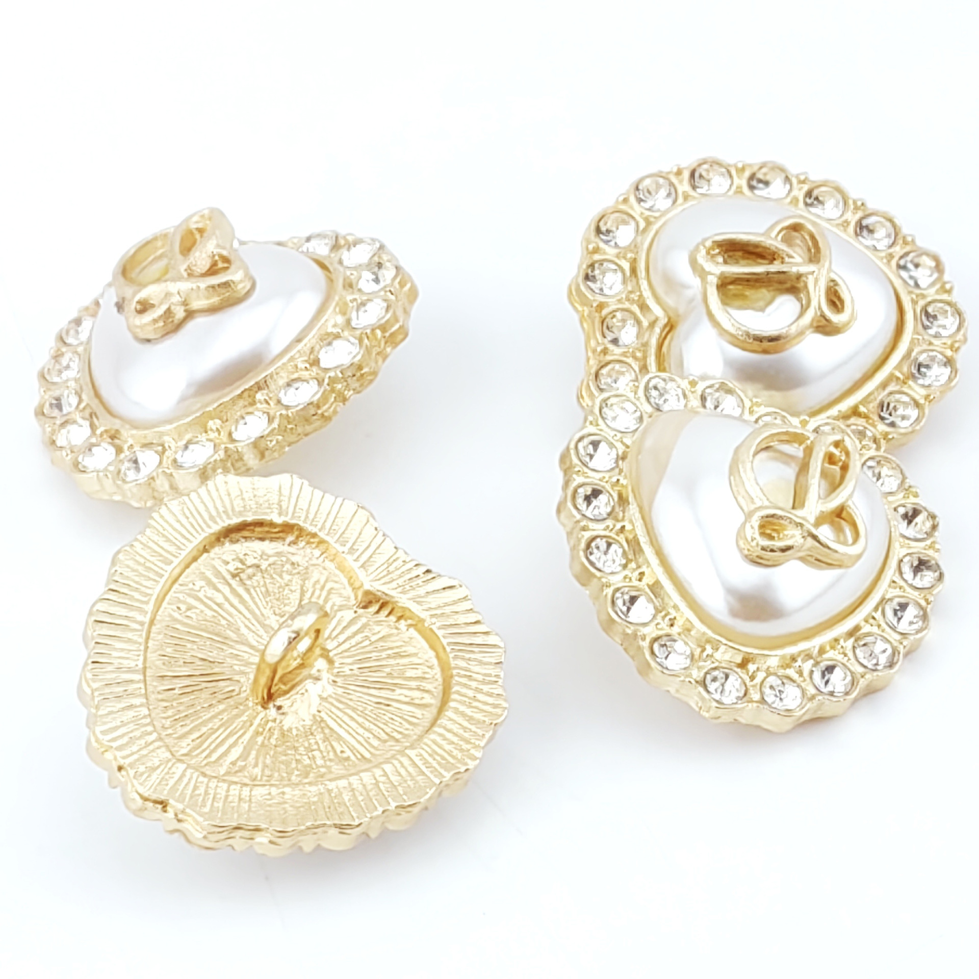 ロマンチックな愛真珠水晶ボタンdiyハート型服装合金金色ボタン蝶ネクタイバッグ靴部品