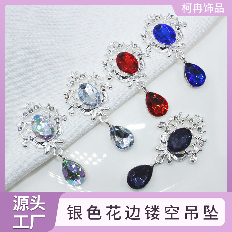 ヨーロッパとアメリカのクロスボーダーファッション、合金製のダイヤモンドバックル、シルバーの水滴型ペンダント、コートDIYアクセサリー、バッグ、衣類装飾卸売