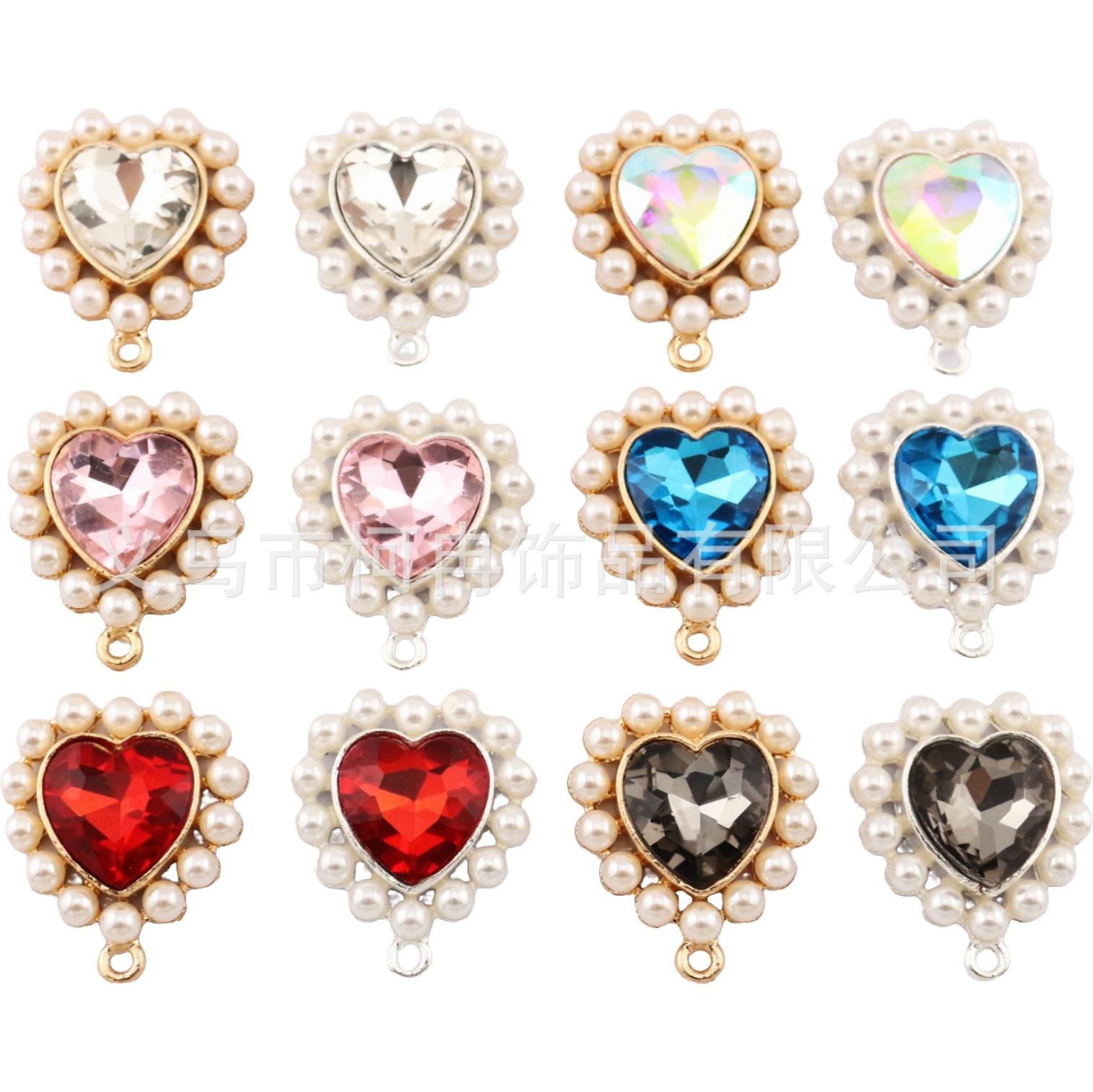 珍珠首饰爱心水晶吊坠发饰花盘钻扣合金挂件手缝diy饰品配件
