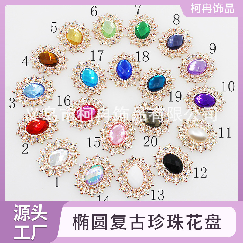 国境を越えて人気の高い楕円形のレトロなパールフラワーパン、金色の合金DIYブレスレットネックレスジュエリーアクセサリー、メーカー卸売