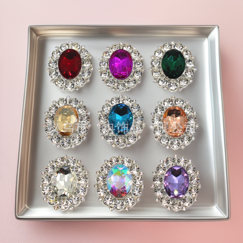 銀色の楕円形合金フラワーパンクルトダイヤモンドバックル装飾品アクセサリー衣料品DIY装飾品アクセサリー越境商品結婚式装飾