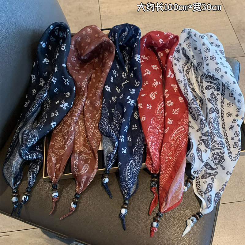 波西米亚复古碎花腰带丝巾女2025新款高级感绑发时尚领巾配饰批发