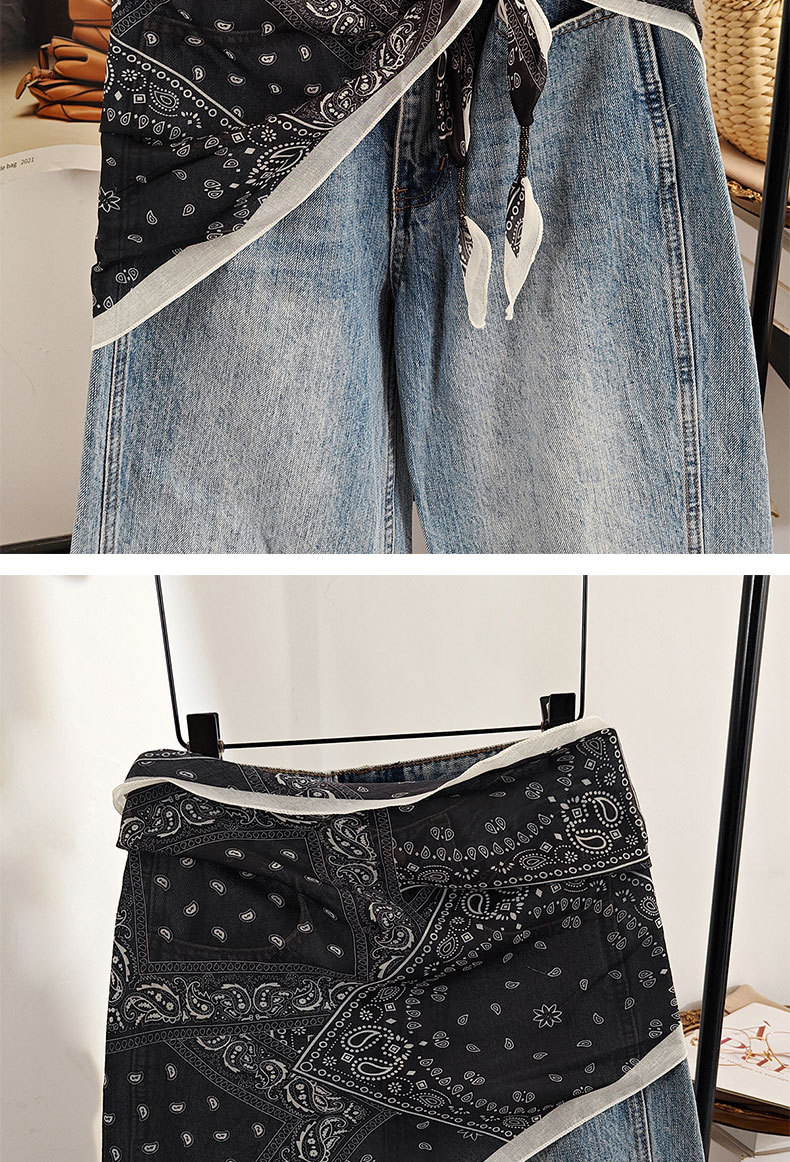 2025新款复古时尚黑色腰果花系带大三角巾女叠穿屁帘配牛仔裤腰封