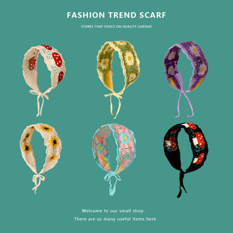 甘い牧歌的なスタイルのニットヘッドバンドスカーフ女性の春のヘアアクセサリー手作りかぎ針編み三角スカーフハイエンド旅行卸売