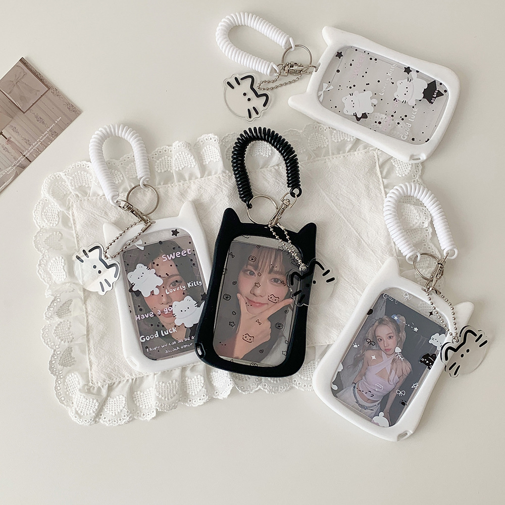 韓国版PUカードホルダー、子猫ペンダント、アイドルカードディスプレイホルダー、学生証、バスカード、食事カード保護カバー