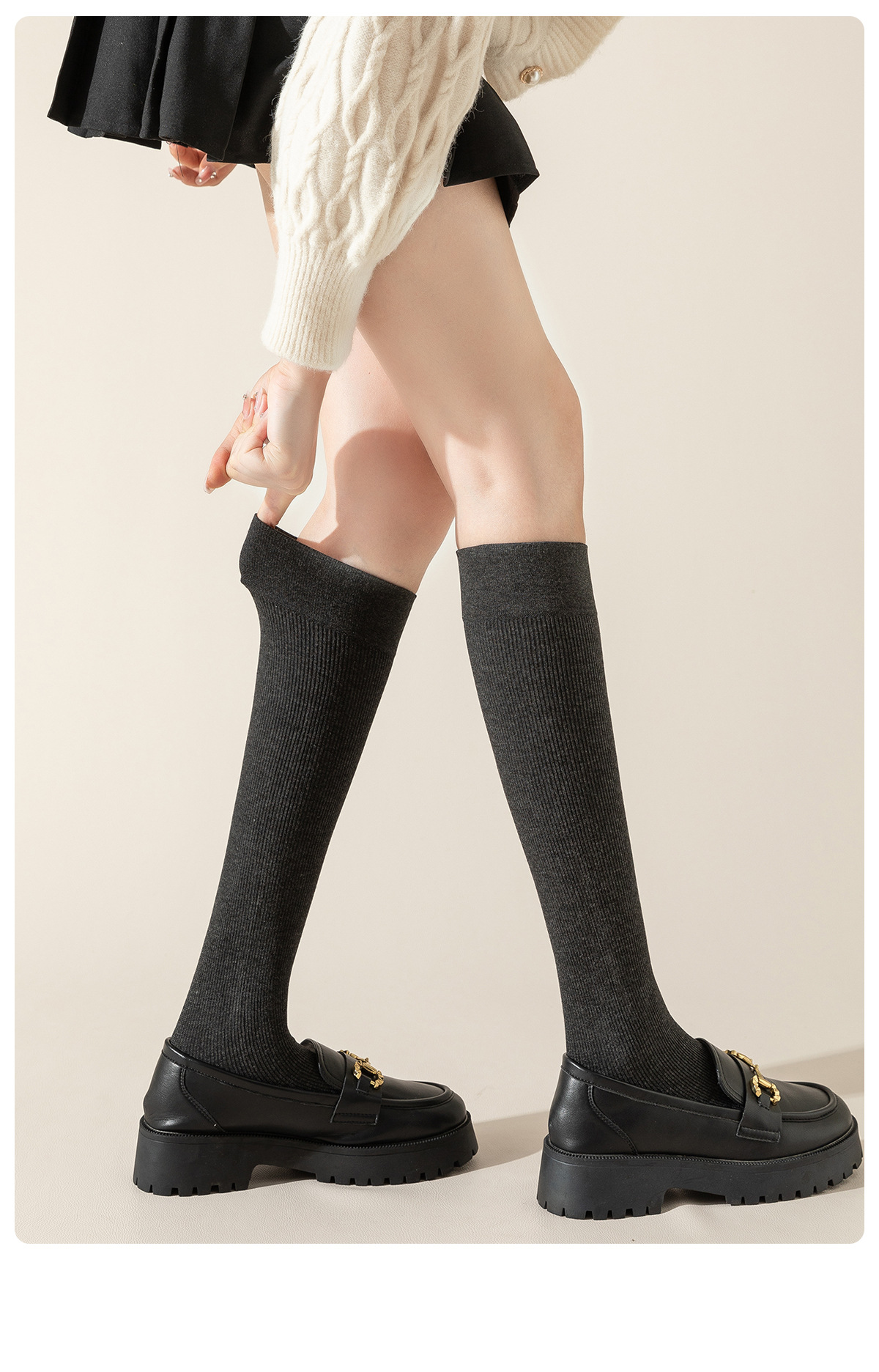 格雷系小腿袜女春秋微压显瘦jk袜子黑灰色高筒袜冬季过膝盖长筒袜